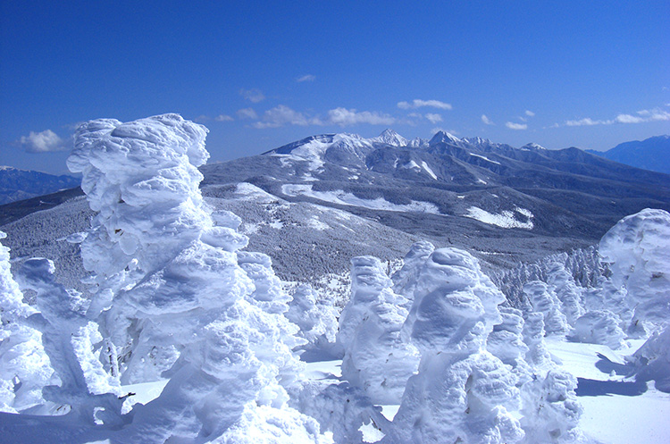北横岳はロープウェイで一気に2200mまで上がって短い時間で登頂できるため、雪山入門の定番コースとして人気のスポットです。