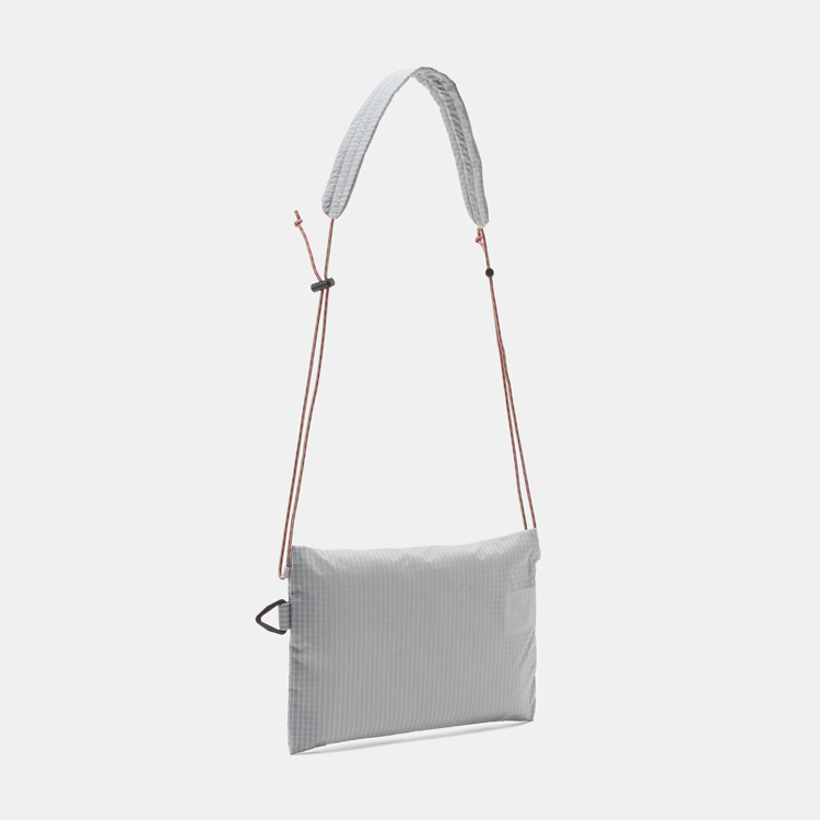 すっきりとしたフォルムに2つの小物ポケットが嬉しいサコッシュ。生地にはシリコン加工の軽量で高強度の撥水機能を搭載。フロントロゴはリフレクター仕様で夜間の視認性を向上させた作りになっています。またショルダーパッドにはクッションが入っている為、長時間の肩への負担を軽減する効果が備わった高性能なアイテムです。