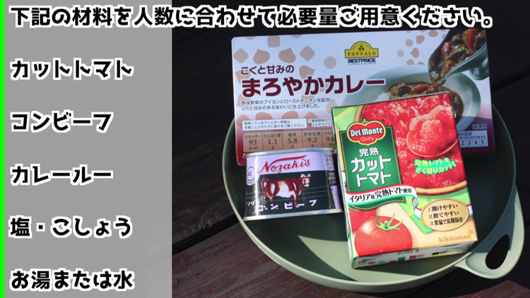 今回の山ごはんレシピ動画は、コンビーフとカットトマトを使った「トマトカレーに!とびかカレー!」を作りました。ごはんやパンにとっても合いますよ。動画を参考に、ぜひ作ってみてくださいね♪