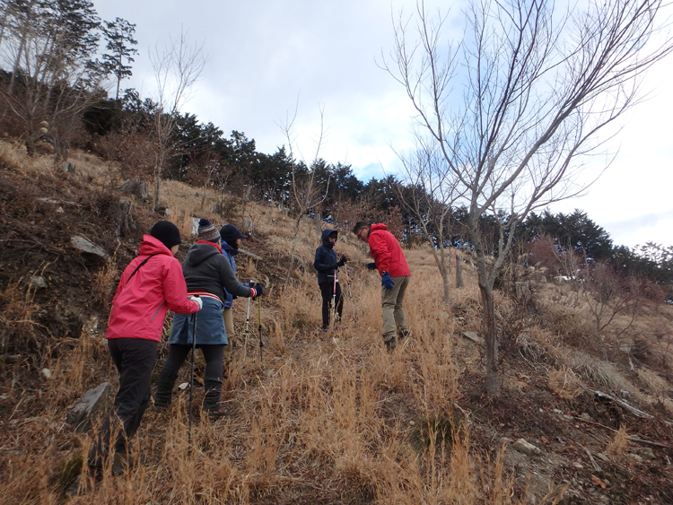 ▼冬の低山では、落葉樹の葉が全部落ちているので大変見通しがよく、森が明るいのも特長です。