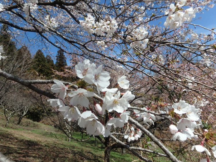 ▼集落のある里山に到着すると色とりどりの”桜”や”桃”が見事に満開!