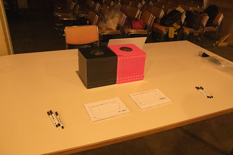 ▼懇親会の最後には、1回目の投票を行います。気になる人の名前を書いて投票いただきます。投票結果は明日の登山のグループ分けに反映されます。