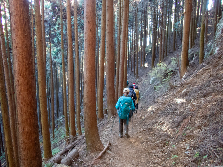 ▼ここから急坂です。特に急な場所はストックを片手に持ち、手も使って登ります。