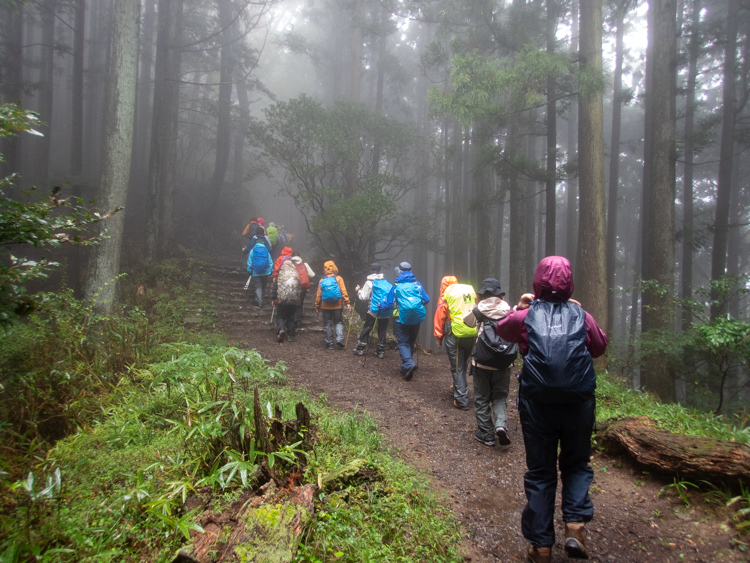 ▼今回の参加者の皆さんは、レインウエアを着るのも、雨の登山道を歩くこともはじめてという方がほとんどでした。