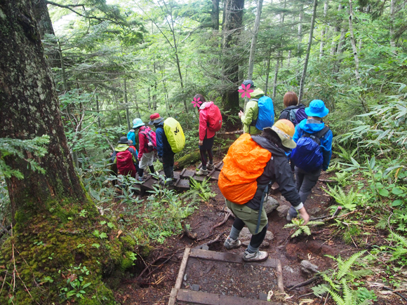 ▼トレッキングには登山ガイドが同行するので初心者でも安心です。靴紐の結び方や疲れない歩き方なども教えてくれます。