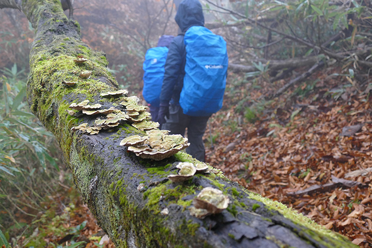 ▼小さな植物やキノコ、苔を楽しむ山歩き。